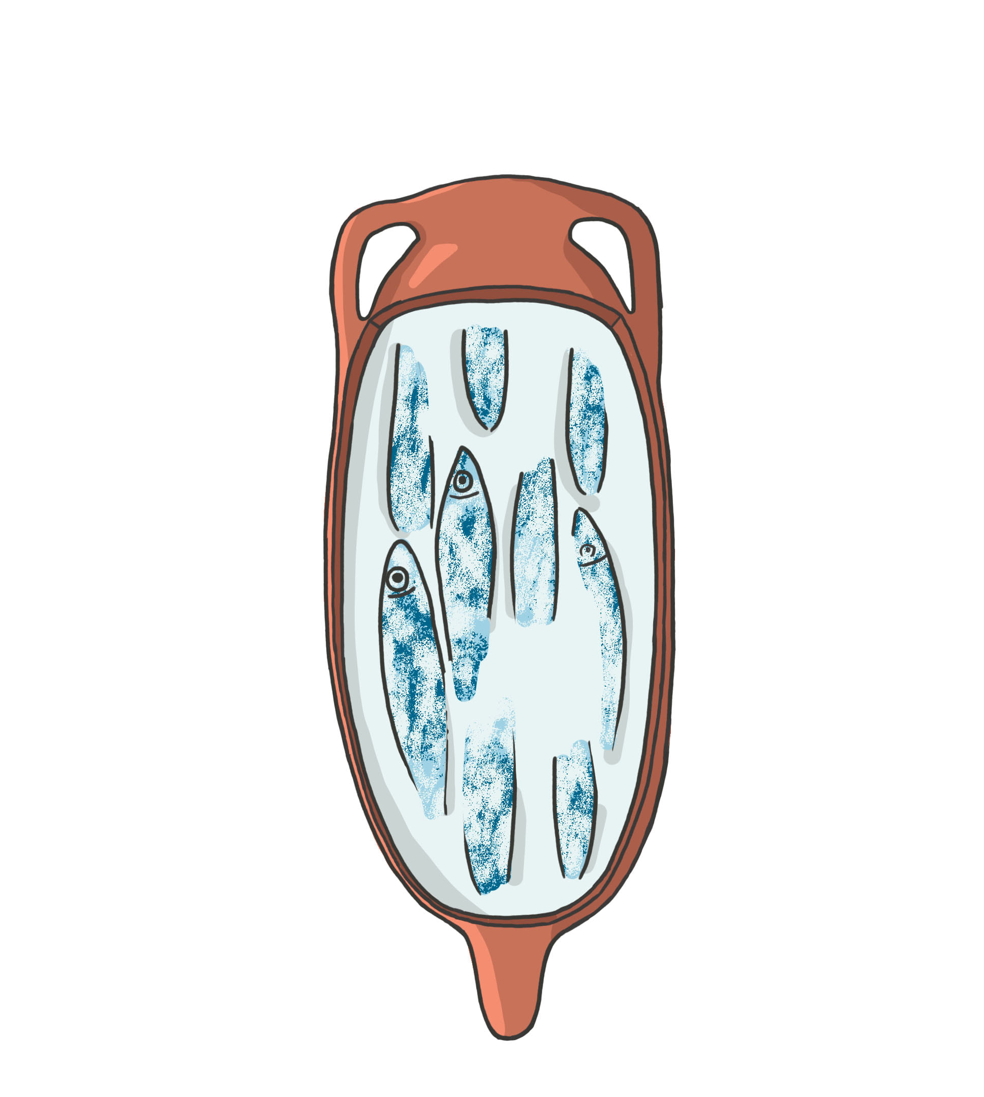 Ánfora romana rellena de sardinas y salmuera, elaborada por capas para ver el proceso del ánfora completa, el interior con su relleno, y el ánfora reconstruída en la actualidad. Forma parte de un proyecto audiovisual interactivo, de ahí la importancia de las capas.